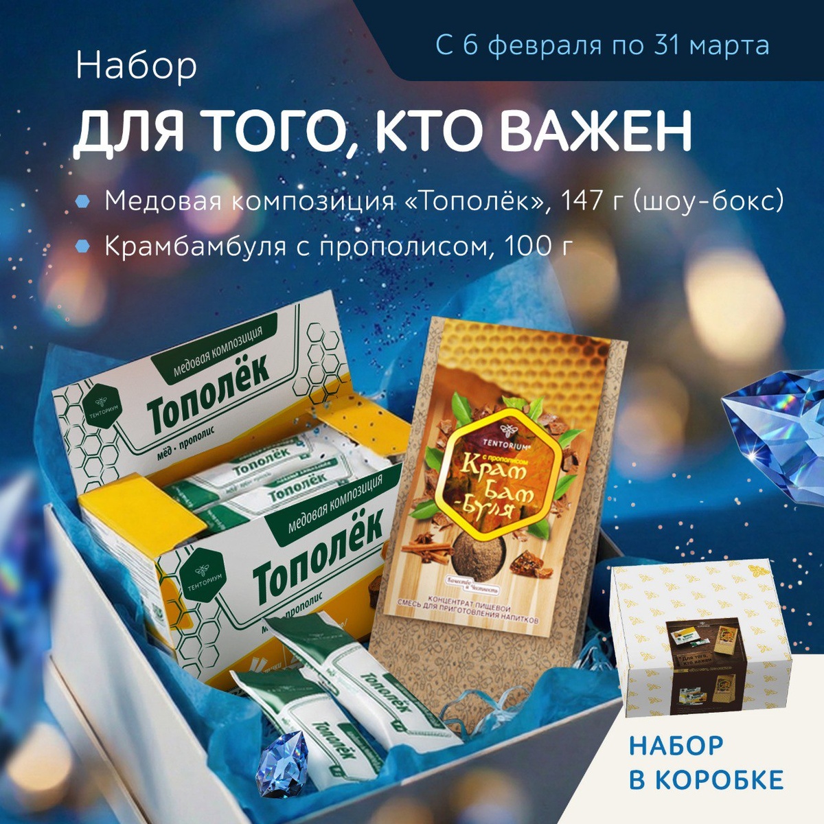 ✔️“Для того, кто важен” (шоу-бокс медовых композиций "Тополёк" 21 стик, крамбамбуля с прополисом 100 г) с выгодой 5%
