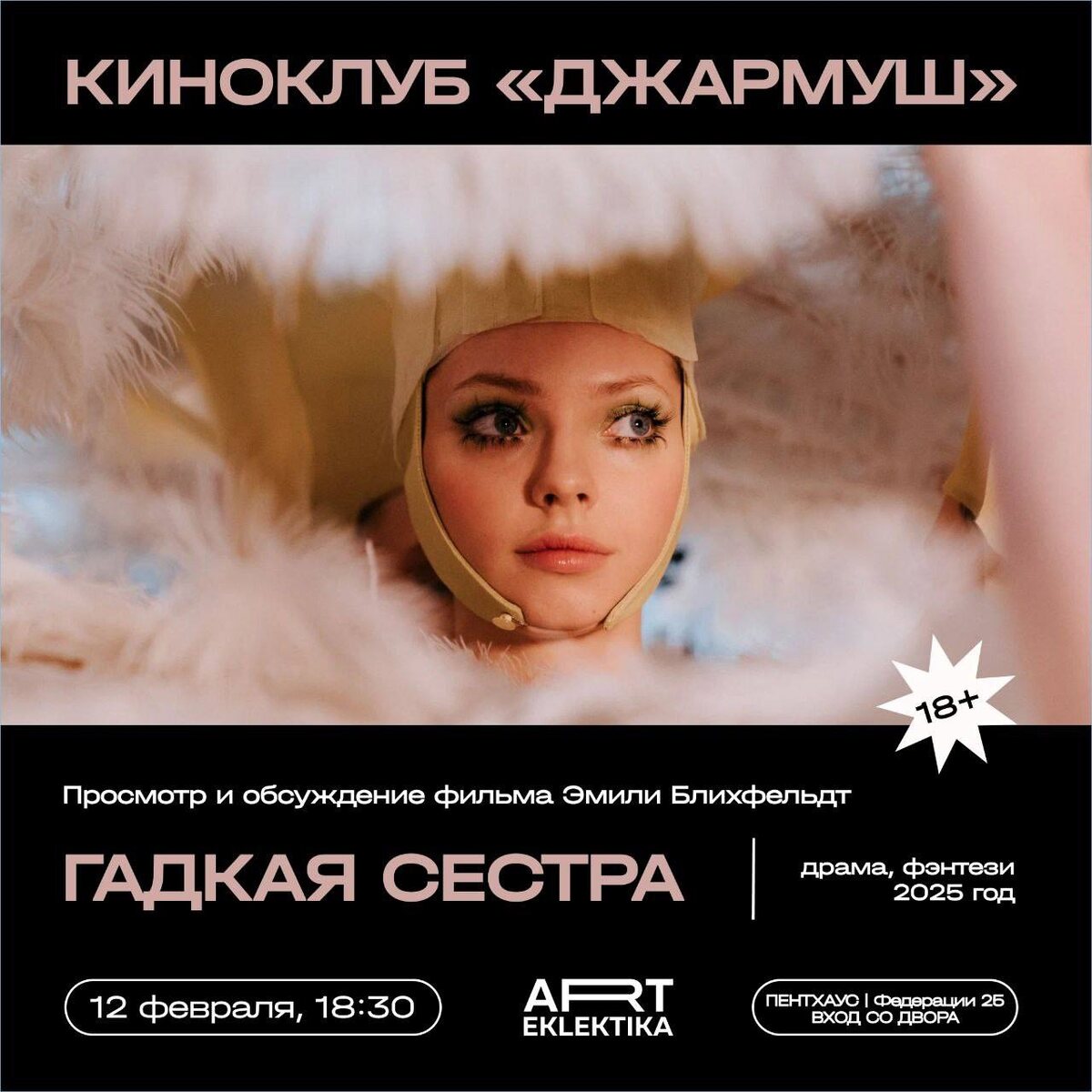 + в киноклубе «ДЖАРМУШ» 🗓️ 12 февраля, 18:30 📍Креативное пространство "Пентхаус", Федерации 25, вход со двора «Гадкая сестра» — сатирический фильм жанра боди-хоррор с элементами чёрной комедии, созданный Эмили Блихфельдт в 2025 году в качестве режиссёрского дебюта, где она также выступила сценаристкой. Опираясь на мотив сказки «Золушка», фильм повествует о старшей дочери мачехи — Эльвире — которая вынуждена преобразиться, чтобы стать «красивой», очаровать принца на балу и вытащить свою семью из нищеты. Премьера фильма состоялась на кинофестивале «Сандэнс» 23 января 2025 года, а также была показана в секции «Панорама» 75-го Берлинского международного кинофестиваля. Ведущий киноклуба: Павел Солдатов. 🏷Вход — свободные взносы #12февраля26@culturnik
