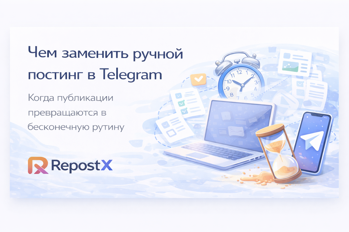 Ручной постинг в Telegram кажется нормальным решением, пока канал небольшой. Один источник, несколько постов в день — всё делается быстро. Но со временем публикации начинают занимать всё больше внимания. Нужно постоянно проверять каналы, копировать текст, следить за форматированием, не забывать про время выхода. В какой-то момент администратор начинает задаваться вопросом: чем заменить ручной постинг в Telegram, чтобы не тратить на него часы каждый день. Важно понимать: проблема не в самом Telegram и не в контенте. Проблема в том, что ручной процесс плохо масштабируется. Любое увеличение количества источников автоматически увеличивает нагрузку. При этом ценности в этих действиях почти нет — это чистая техническая работа. Альтернатива ручному постингу — выстраивание системы, где публикации происходят автоматически, но по заданным правилам. Человек продолжает отвечать за выбор источников и формат, а перенос контента выполняется инструментом. Это снижает количество ошибок, экономит время
