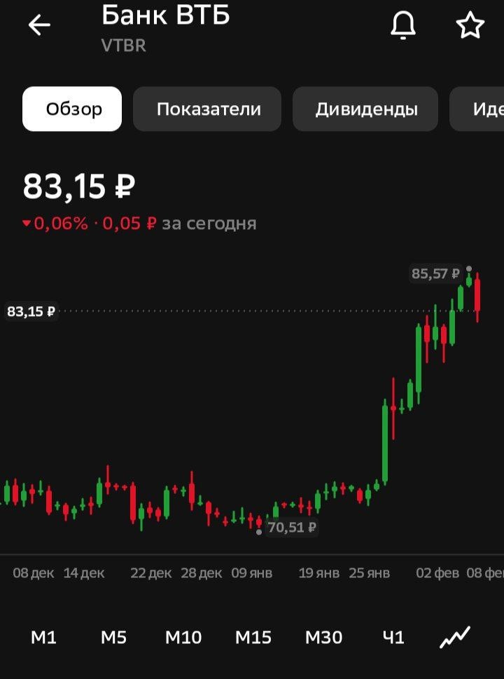 Причины роста акций. До 29 января акции банка ВТБ два месяца уныло болтались около 70 руб. И вдруг неожиданно выросли за 10 торговых сессий на 17%. На пике в воскресенье стоили 85,5 рублей, сейчас 83 руб. При этом значимых корпоративных новостей не было. Поищем причины. Единственное событие, которое я обнаружил и которое, как мне кажется, могло повлиять на котировки — это встреча главы ВТБ Андрея Костина со студентами Государственного университета управления 30 января, где тот сообщил: «У нас в 2025 году прибыль составила 500 млрд рублей, в 2026 году 600 млрд рублей планируем или, может быть, даже 650 млрд рублей. Я думаю, что у нас будут возможности для наращивания капитала и выплаты дивидендов. Наша стратегия — это, конечно, ежегодная выплата дивидендов». По следам недавних событий написал в "ИнвестПрактике" на Sponsr экспрес