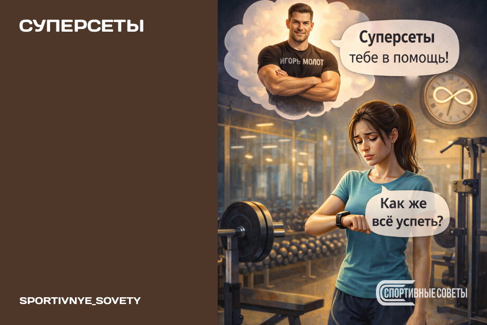 Хочешь стать сильным и рельефным, но жизнь настойчиво предлагает вместо спортзала поработать, поспать или просто полежать? Часто, главное препятствие на пути к железному здоровью – банальная нехватка времени. Но что если есть метод, который буквально сжимает тренировку вдвое, сохраняя при этом все её «плюшки» для мышц? Звучит как развод, но свежий научный обзор говорит, что это реально [1]. Исследователи проанализировали кучу данных, чтобы сравнить традиционный силовой тренинг (делаем упражнение, отдыхаем, повторяем) с суперсетами. В фокусе были три типа: для мышц-антагонистов (например, бицепс/трицепс), для разных частей тела (например, присед + тяга) и для всего тела сразу. Результаты: 1. Халява времени – не миф. Суперсеты сокращают общее время тренировки примерно НАПОЛОВИНУ. Это не просто «кажется быстрее», это математика: высокая плотность работы за счёт минимума отдыха между разными упражнениями. 2. Качество не страдает (для большинства). Вот здесь важно. Обзор показал, что по клю