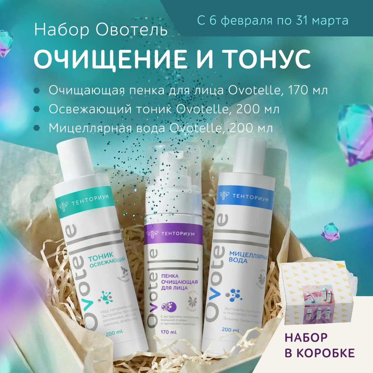 Овотель – очищение и тонус” (мицеллярная вода Ovotelle 200 мл, пенка очищающая для лица Ovotelle 170 мл, тоник освежающий Ovotelle 200 мл) с выгодой