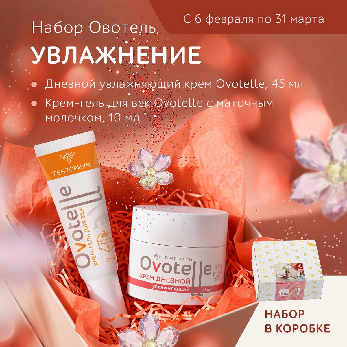 ✔️“Овотель – увлажнение” (дневной увлажняющий крем Ovotelle 45 мл, крем-гель для век с маточным молочком 10 мл) с выгодой 10%
