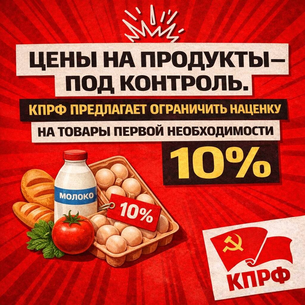 #КПРФпредлагает установить предельный размер торговой наценки на продукты первой необходимости - не более 10% от закупочной стоимости.