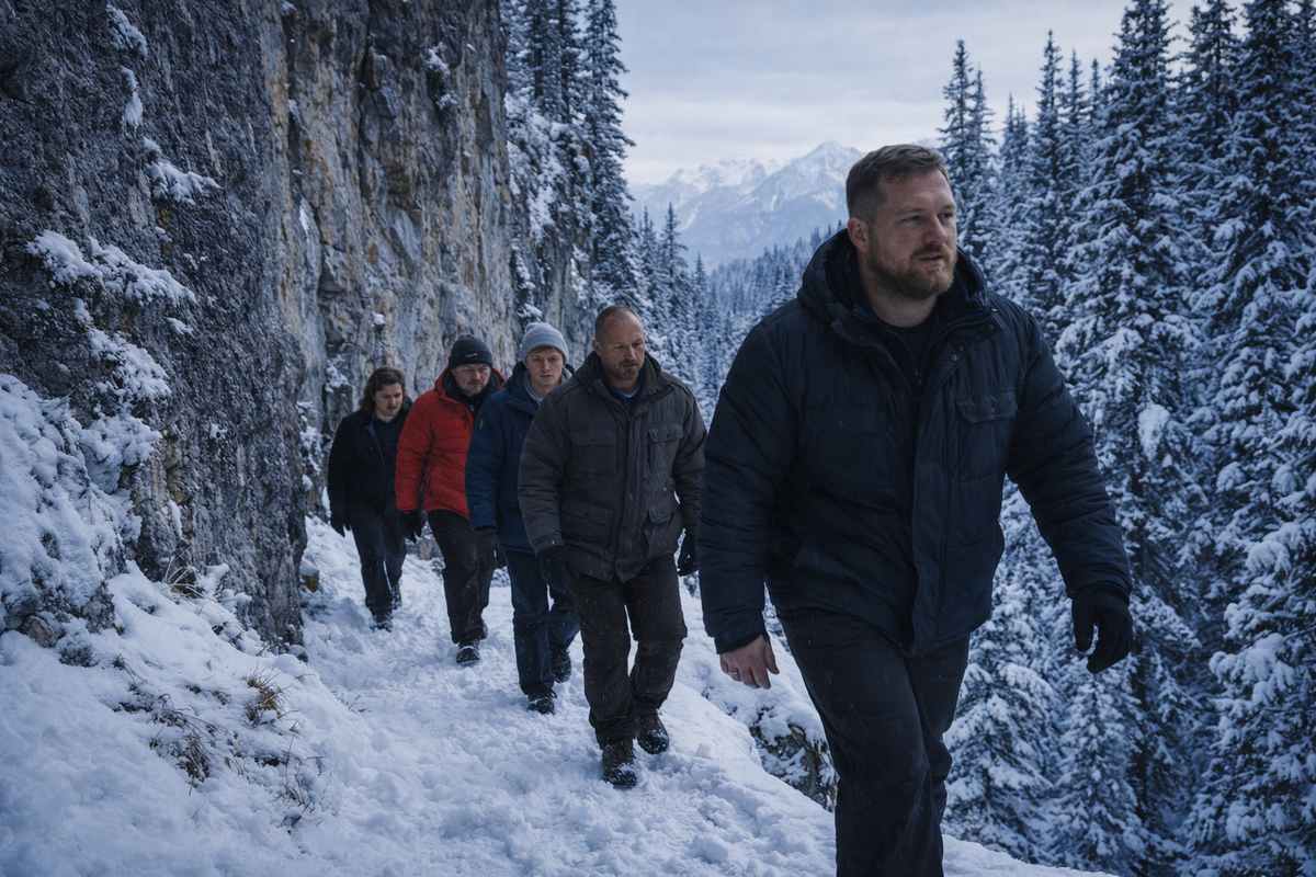 Мы долго шли через лес вверх по склону горы, затем начался крутой спуск, и временами приходилось съезжать на заднице, цепляясь за деревья. Далее мы шли по узкой долине, вдоль замёрзшего ручья. Лес, по обеим сторонам долины уходя вверх, казалось, показывал всю ничтожность человека перед природой. Мне внезапно стало грустно от того, что я всю жизнь думал о себе как о человеке неслучайном, важном для мира, Бога, всего сущего. Но здесь я почувствовал себя ничтожно малым, никем.