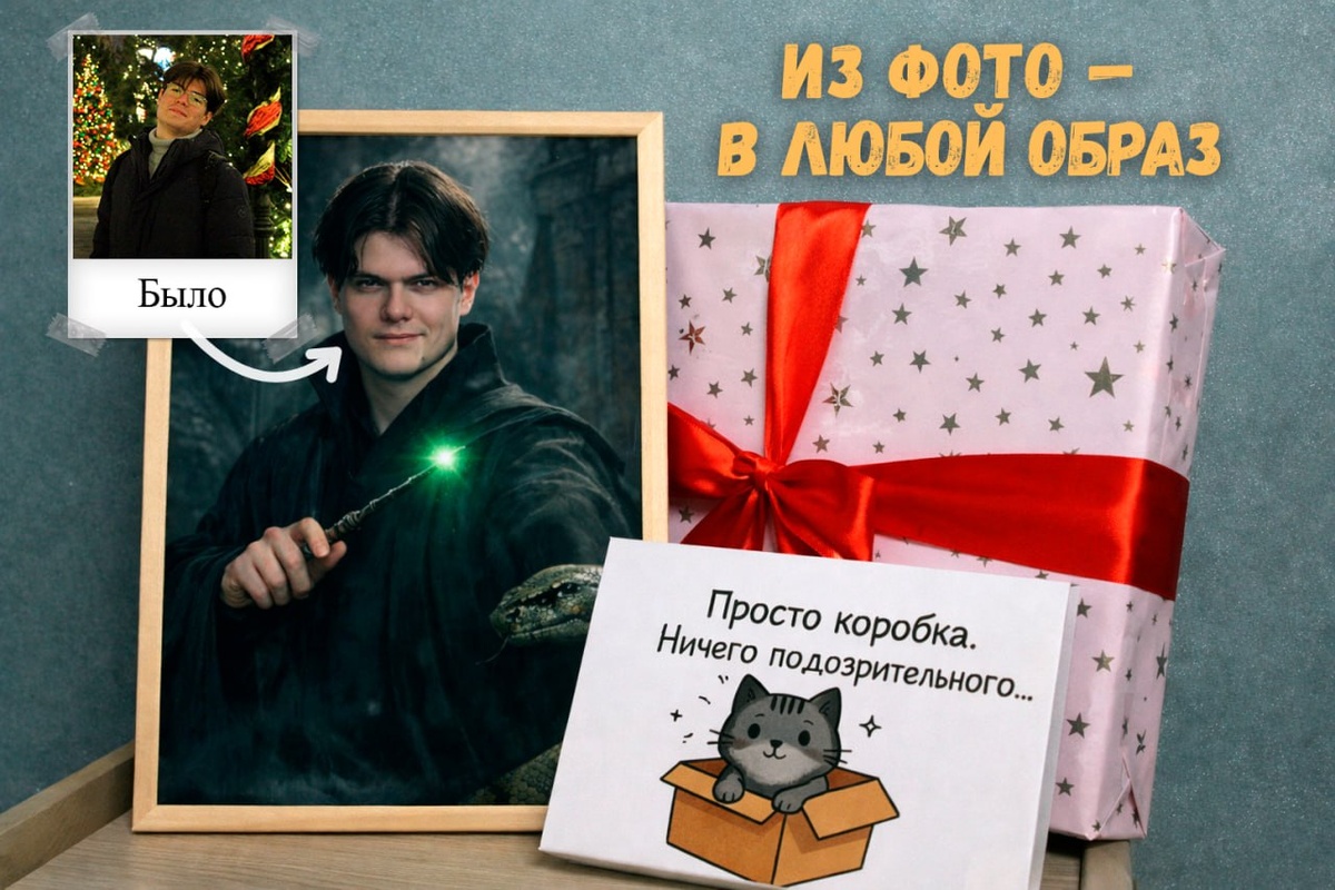 ? Недавно наткнулся на очень атмосферную идею 👀 Из обычной фотографии делают персональный портрет во вселенной Гарри Поттера — можно представить себя учеником Хогвартса, профессором, аврором или тёмным магом. Образ подбирается индивидуально — под характер и настроение человека: ❤️ Любимый факультет 🪄 Магическая атмосфера Хогвартса 👓Ощущение, будто ты действительно часть этой вселенной При этом, если хочется чего-то другого — можно создать портрет в любом образе, который только придёт в голову. Портрет оформляют в рамке и собирают готовый подарочный набор 🎁 Внутри — сам портрет, аккуратная подарочная упаковка и приятное дополнение в виде шоколадных конфет, так что подарок можно сразу вручать, без лишних хлопот. Получается очень лично — и для фаната это действительно сильная эмоция. Идея только начинает развиваться, поэтому на первый заказ можно воспользоваться промокодом SP1LO7DWE7A — минус 500 рублей первым 20-ти оформивших заказ. Посмотреть примеры готовых работ и варианты