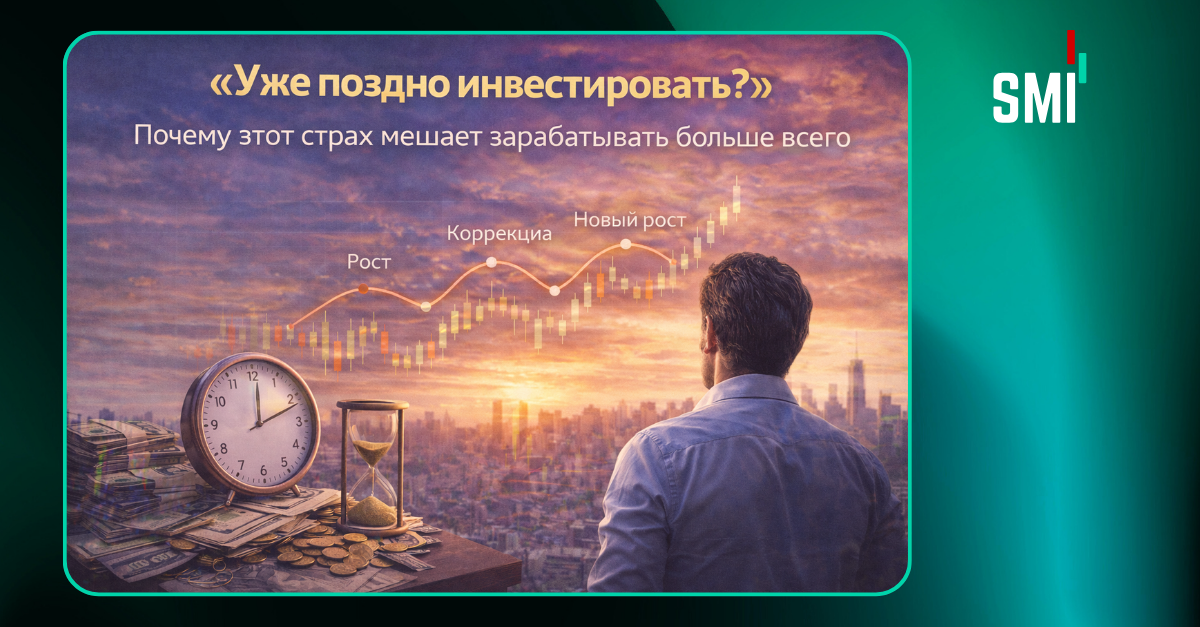 Фраза «инвестировать уже поздно» сегодня звучит всё чаще. Рынки выросли, акции кажутся дорогими, а ощущение упущенных возможностей только усиливается. Многие в этот момент выбирают самое простое решение - ничего не делать и ждать «лучшего момента». Проблема в том, что именно ожидание идеальной точки входа чаще всего и становится главной причиной отсутствия результата. Большинство инвесторов смотрят на рынок задним числом. В прошлом рост всегда выглядит очевидным, а правильные решения — простыми. Но в реальном времени рынок никогда не бывает однозначным. Когда он растёт, кажется, что поезд уже ушёл. Когда падает - что впереди только худшие сценарии. В итоге инвестор постоянно откладывает вход, каждый раз находя новую причину подождать. Рынок не движется по прямой. Его нормальное состояние - это циклы: рост сменяется коррекцией, затем следует пауза, после которой начинается новое движение. Это повторяется снова и снова, независимо от новостей и эмоций участников. Если ждать момента, когд