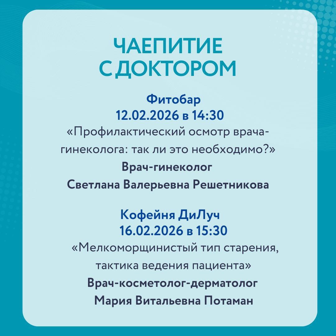☕️ Приглашаем на тёплые встречи с ведущими специалистами лечебно-диагностического центра ДИЛУЧ