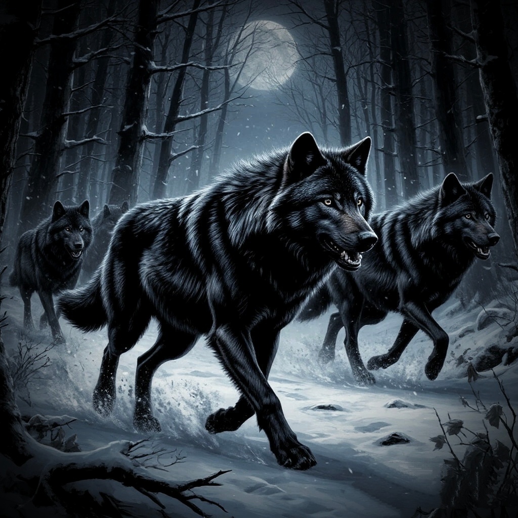 Михаил, старый охотник, чей дом находился на краю деревни, услышав собачий вой, выглянул в окно, пытаясь понять, что происходит. В свете уличного фонаря он увидел картину, от которой у него волосы зашевелились на голове: по его двору ходили волки!