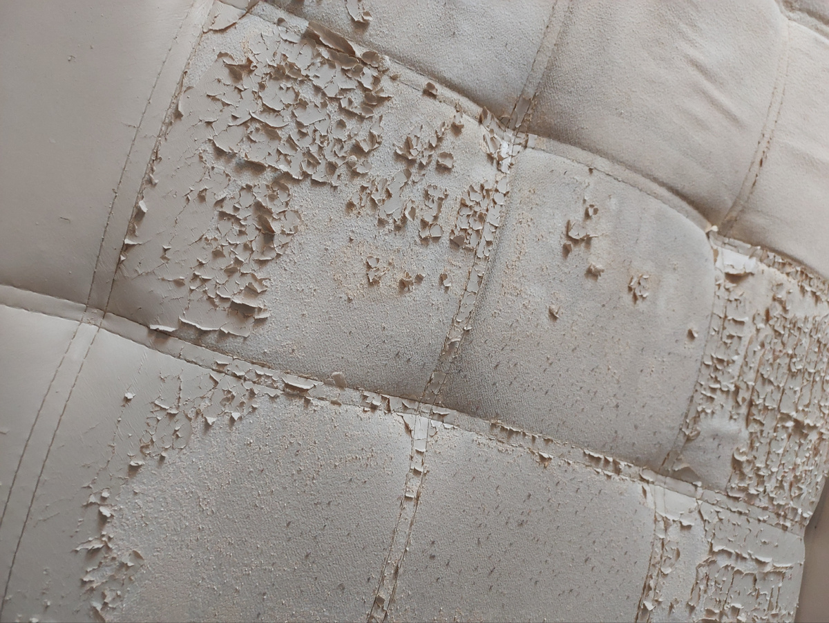 Доброго всем здравия! Сестра отдала мне свой старый диван Анланта. Он удобный, все механизмы в порядке, но обивка из экокожи ужас-ужасный, сыплется хлопьями как прошлогодний снег. Перетягивать диван пока не планирую. Хочу поставить его вместо кровати и посмотреть, будет ли удобно им пользоваться. Если понравится, потом перетяну. Пока у меня план такой: есть паутинка и старый тюль, приклею, чтобы не сыпались хлопья; потом оберну синтепоном и пробью степлером, одену чехол, который у меня уже есть. Попробовала приклеить паутинку и тюль. На удивление, вышло не плохо, бахромушки сыпаться теперь не должны. Тюль резать не стала, пробью степлером вместе с синтепоном и тогда отрежу. Синтепон прибить не получилось, как оказалось сломан степлер. Долго думала как в него заправить скрепки. Ничего не вышло, у степлера отсутствует одна деталь - толкатель скрепок внутрь. Видимо работу придётся отложить до покупки нового степлера. Вот тут должен быть толкатель скрепок, а его нигде нет. Это моя перв