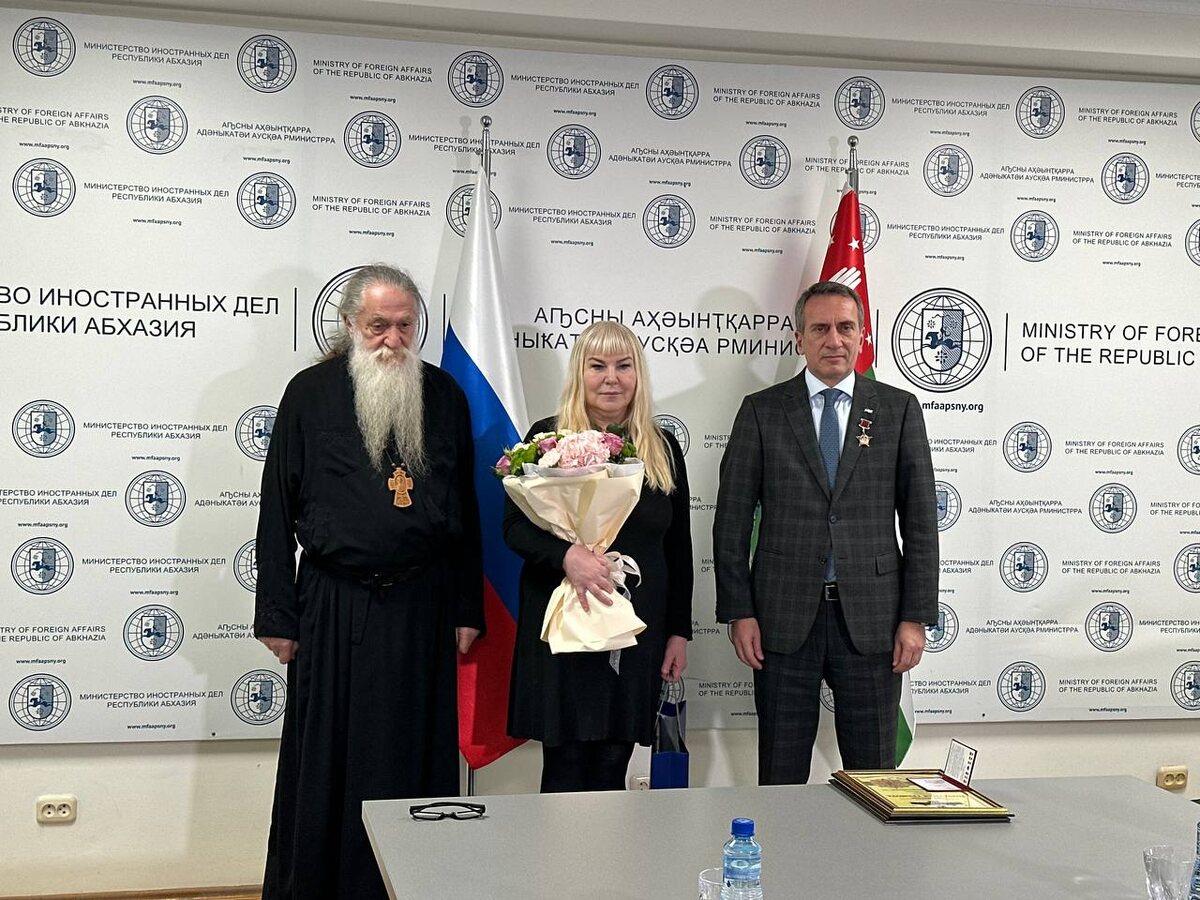 России» наградила министра иностранных дел Абхазии Олега Барциц знаком отличия «Трудовая доблесть». Министру также вручили почетную грамоту «за активное участие в судьбе Родины, особые заслуги в труде, патриотизм и вклад во славу России». Президент «Благотворительного фонда святого мученика Вонифатия», представитель общественной организации «Трудовая доблесть России» Наталия Мезенцева выразила благодарность министру за теплый прием. 📎«У Всероссийской общественной организации «Трудовая доблесть России» есть свои отделения в разных странах. Мы недавно открыли представительство в Греции, а также планируем открыть их в Сербии и Китае. В Америке мы также вручали награды сенатору. Сейчас мы наблюдаем как укрепляются и расширяются связи между Россией и Абхазией. В условиях современных вызовов и угроз работа министров иностранных дел приобретает особое значение. Дипломатия позволяет решать многие проблемы и предотвращать конфликты. Ваш вклад в развитие добрососедских отношений между Респу