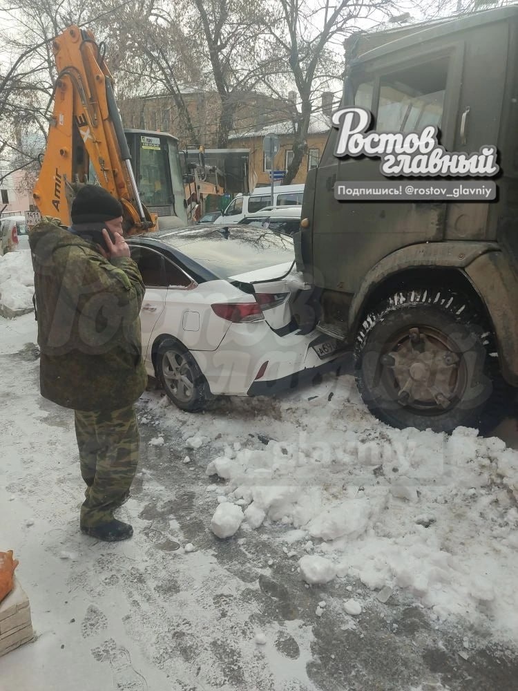! КамАЗ снёс Хëндай Сонату и Хëндай Крету + трактор с ковшом. Соната в хлам, Крета менее пострадала. Все машины были припаркованы. Пострадавших нет. Пострадала только нервная система двух хозяев Хëндаев 🤦 У водителя КамАЗа нет страховки, работает на частное лицо. Как таких выпускают работать? - пишет подписчик "Ростов Главный" 👉🏻 Подпишись на @rostov_glavniy 💌 Предложи пост 😆 Читай MAX