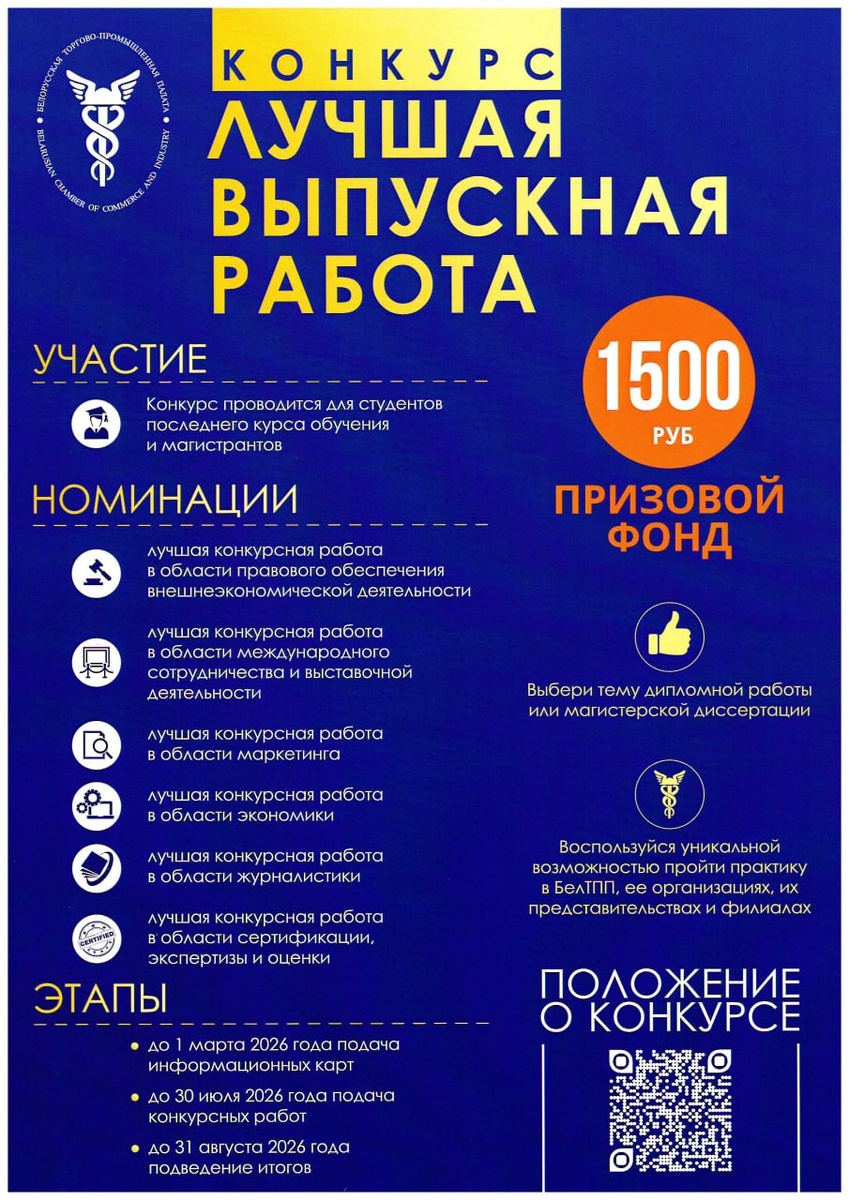 📣Белорусская торгово-промышленная палата объявляет конкурс для студентов и магистрантов выпускных курсов – «Лучшая выпускная работа