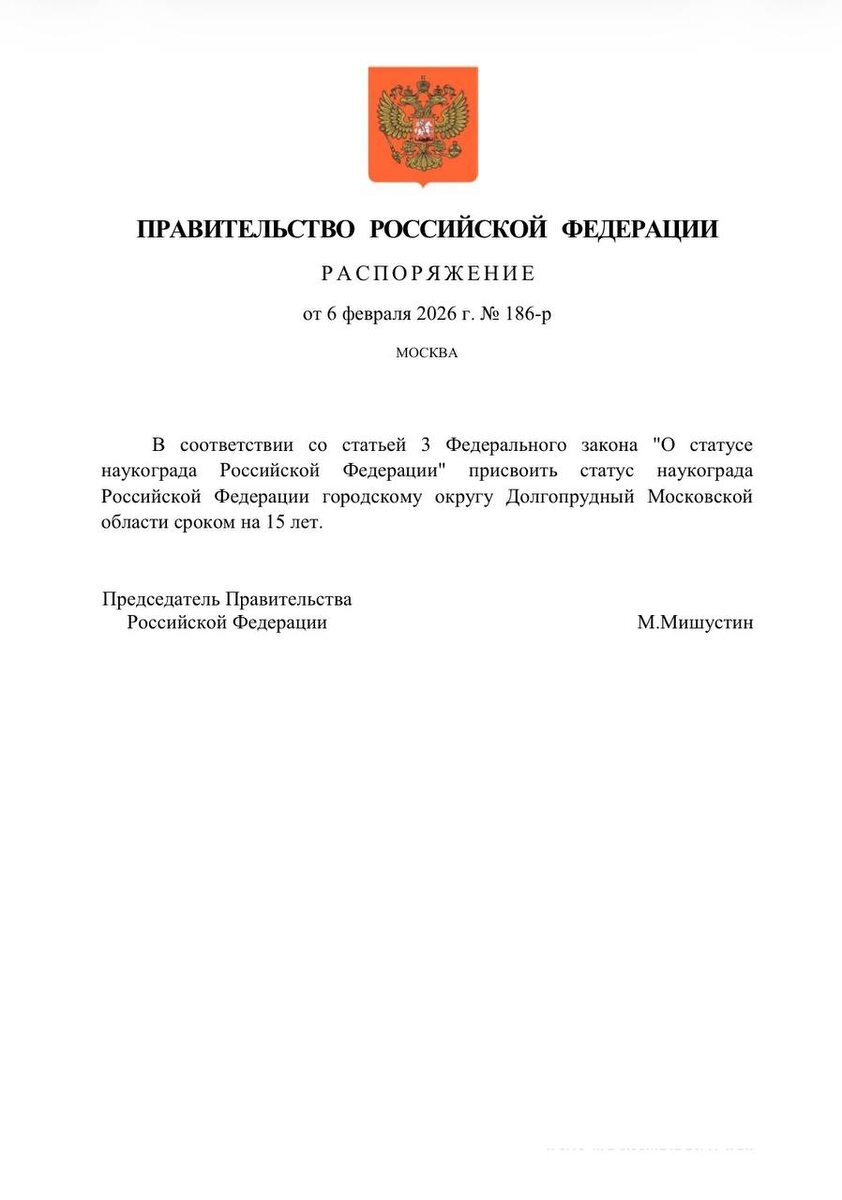 ❗️В День российской науки Михаил Мишустин присвоил статус наукограда городу Долгопрудный. 📃Напомним, в мае 2025 года было принято решение о создании ИНТЦ "Долина Физтеха". Основными направлениями его деятельности станут разработки в сфере микроэлектроники, развитие квантовых, биомедицинских, телекоммуникационных и аэрокосмических технологий, а также исследования в области искусственного интеллекта, робототехники и беспилотного транспорта. ➡️Еще ближайшие 15 лет до 2041 года Долгопрудный точно будет наукоградом, хотя справедливости ради отметим, что по своему вкладу в научно-технологическое развитие России Долгопрудный и знаменитый Физтех уже давно де-факто являются наукоградом, поэтому с большой долей вероятности можно прогнозировать, что и после 2041 года этот статус у гоорода останется. 🔗Подробнее. #новостиНОП 📱 НОП - Научно-образовательная политика