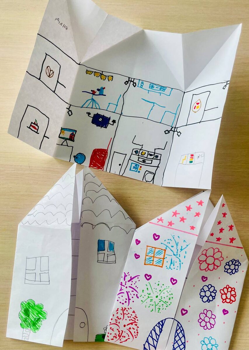 ⬆️Вот такие домики-оригами делали сегодня Как делаем: Сгибаем лист А4 пополам (находим середину) Складываем правую сторону к середине, затем левую сторону к середине Складываем верхний правый угол к середине, затем верхний левый угол к середине Углы заправляем внутрь Рисуем внутри комнаты, мебель: столы, стулья, телевизор, кровать — дети любят придумывать семьи, животных и игрушки. На фасаде рисуем окна, двери, узоры. Раскрашиваем крышу Домики будем дорисовывать, заселять героями, играть. Ведь тема недели в нашем саду: Дом. Мебель. Бытовая техника Может, и фотографию получится сделать поудачнее😉 #ЧудоИзБумаги