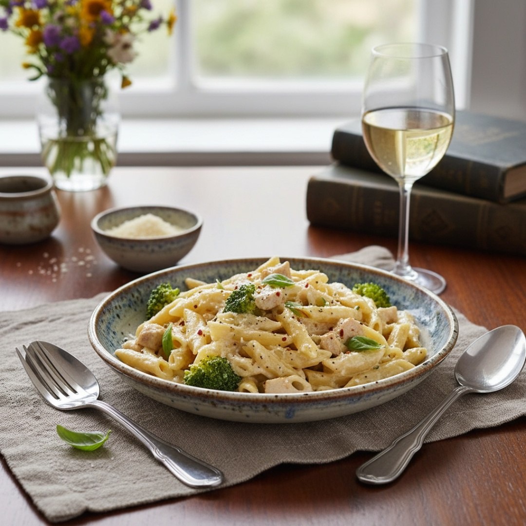 Ингредиенты⤵️ 🔸Паста — 300 г 🔸Куриное филе — 400 г 🔸Брокколи — 300 г 🔸Чеснок — 3 зубчика 🔸Сливки 20% — 300 мл 🔸Сыр пармезан — 80 г 🔸Оливковое масло — 2 ст.л. 🔸Соль, перец, мускатный орех — 1 щепотка 🔸Лимонная цедра — 1 ч.л. Приготовление🍝 1. Пасту отварить в подсоленной воде до состояния аль денте. За 3 минуты до готовности добавить в кастрюлю соцветия брокколи. 2. Курицу нарезать кубиками, обжарить на оливковом масле до золотистого цвета. Добавить измельчённый чеснок, готовить 1 минуту. 3. Влить сливки, добавить тёртый пармезан, специи и цедру. Довести до лёгкого загустения на среднем огне. 4. Слить воду с пасты и брокколи, переложить к курице в соус. Аккуратно перемешать. 5. Подавать сразу, посыпав дополнительно пармезаном и свежемолотым перцем. Рецепт дня #паста #курица #мясо #птица #брокколи #сыр #сливки #соус