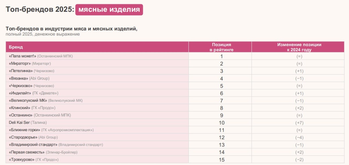 Аналитика построена на данных офлайн-продаж за период с января по декабрь 2025 года и не включает собственные торговые марки ретейлеров (СТМ). В лидерах у россиян оказались: ▪️ Мясные изделия: «Папа может!», «Мираторг», «Петелинка»; ▪️ Кондитерские изделия: Kinder, «Яшкино», Alpen Gold; ▪️ Снеки: Lay’s, «От Мартина», «Джинн». ▪️ Детское питание: «Фруто-Няня», «Агуша», «Тёма». ▪️ Прохладительные напитки: «Добрый», Adrenaline, «Черноголовка». 😀Пожалуй, лучший телеграм-канал о маркетинге