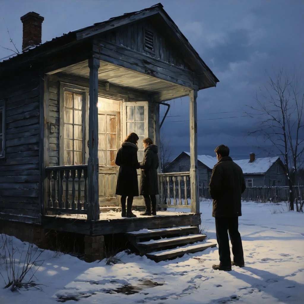Он стучал в окна и двери, не жалея ни сил, ни старых досок. Удары гулко разносились в морозном воздухе. Стекло дребезжало, но держалось. Нина и Варвара Михайловна стояли у крыльца, не двигаясь, но в их взглядах читалась та же неукротимая решимость. Сейчас их не волновали ни разбитые стёкла, ни сломанные петли — только одна цель: ворваться внутрь и увидеть… увидеть то, чего боялись, во что до последней минуты не хотели верить.