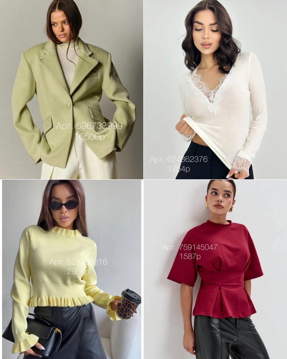 Эта подборка — про весну, где стиль строится на понятных опорах: светлая верхняя одежда, мягкая пастель, костюмный серый, спортивные комплекты «для города», кружево как акцент и крупные украшения, которые собирают образ за секунды. Если хотите универсальную капсулу, берите пальто (арт. 542502233), серый костюмный блок (арт. 210255139, арт. 175036057, арт. 177256714) и один выразительный «настроенческий» элемент — кружево (арт. 624862376 или арт. 682288253) либо пастельный трикотаж (арт. 528738816). Весна любит лёгкость — и эти вещи помогают её создать.