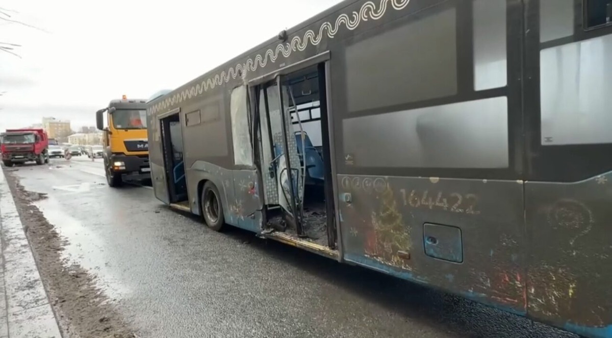 Обстановка после ДТП с рейсовым автобусом в Москве, где, предположительно, пострадали 8 человек