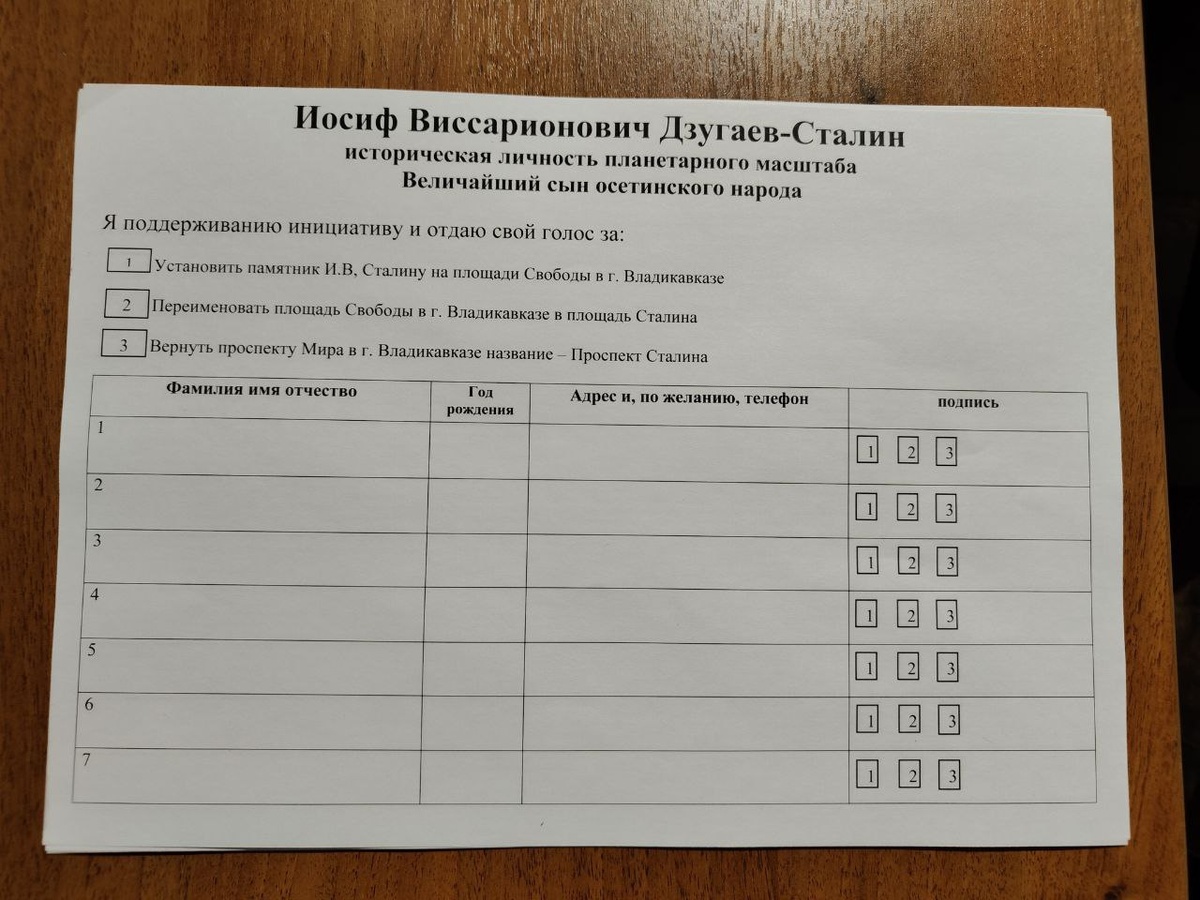 ! То, что Сталин никогда не называл себя осетином, осетинские сталинисты стабильно игнорируют. То, что Сталин сделал с Осетией и осетинами, их не волнует. Сталин и Свобода — это оксюморон, но инициативных товарищей ничем не смутить. Что ж! Так я предлагаю идти до конца и установить на площади Свободы памятник товарищам Сталину и Берии, а перед ними лицом к лицу поставить памятники всем выдающимся деятелям науки, культуры, искусства Севера и Юга Осетии, подвергшимся политическим репрессиям в период правления этого тандема «планетарного масштаба». Если уж помнить, то помнить всё! Никто не забыт и ничто не забыто! (@jusso_m)