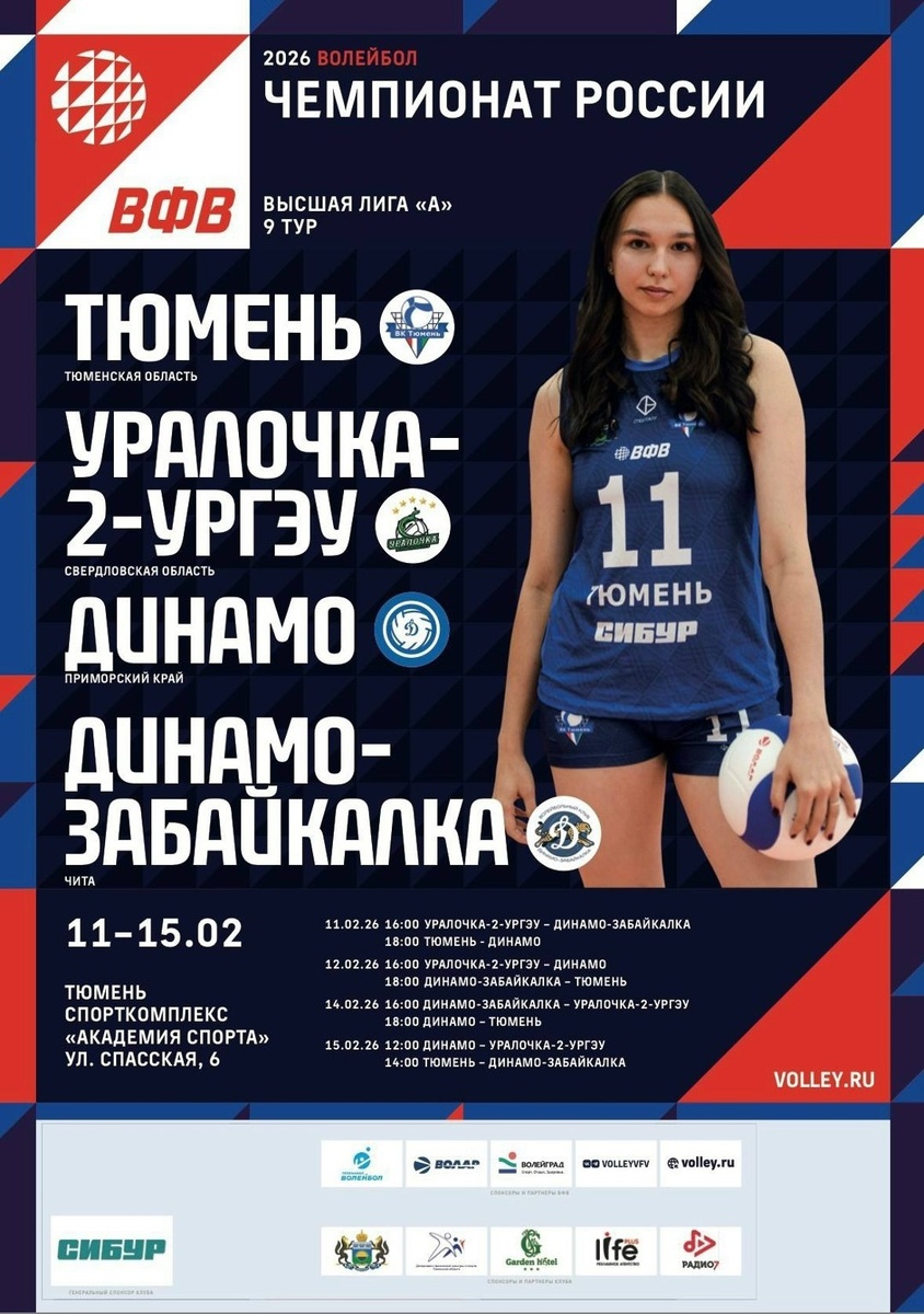 Чемпионат России 2026 9й тур среди женских команд высшей лиги «А» ⏳Когда: Ср 11.02 – Вс 15.02 🔎Где: СК «Академия спорта», ул. Спасская 6 📌 Вход для всех болельщиков – свободный ⚠ 6+ Радостная новость для болельщиков 💕 Уже на следующей неделе в Тюмени стартуют домашние матчи Волейбольного Клуба «Тюмень» в рамках 9-го тура Чемпионата России среди женских команд высшей лиги «А». График игр: • 11 и 14 февраля в 18:00 встречаемся на матчах против «Динамо» (Приморский край). • 12 февраля в 18:00 и 15 февраля в 14:00 болеем в играх против «Динамо-Забайкалка» (Чита). Приглашаем всех любителей волейбола стать частью этого спортивного праздника. Ваша вера в команду и громкие аплодисменты помогут нашим девушкам одержать победу!🏆 #Тюмень #tyumen #ктокуда72 #ktokuda72 #спорт@afisha_kto #14_февраль_2026@afisha_kto #11_февраль_2026@afisha_kto #12_февраль_2026@afisha_kto #15_февраль_2026@afisha_kto
