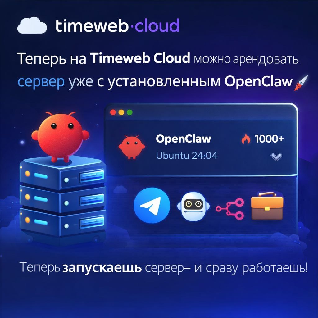 🔥 OpenClaw теперь доступен сразу на сервере Timeweb Cloud Арендуешь сервер — OpenClaw уже установлен. Без ручной настройки и танцев с бубном — сразу в работу ⚡ 🎁 Новым пользователям — до 2 000 ₽ на баланс 👉 Забрать сервер #timeweb #openclaw #ai #cloud #сервер #автоматизация