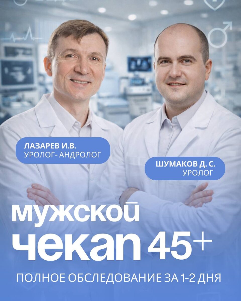 Простата, гормоны, сосуды, сердце, сахар — всё это может меняться без боли и явных признаков. Поэтому мы рекомендуем проходить регулярные обследования! 🌟В нашей клинике вы можете пройти чек-ап «Мужской код: 45+» — быстрый способ проверить себя без беготни и стресса! Почему это реально удобно: ✔️ без очередей ✔️ современное передовое оборудование 2025 года ✔️ результаты — в короткие сроки ✔️ понятное медицинское заключение и чёткий план действий 📲 Узнать подробности и записаться можно по телефону +7 (8652) 99-03-41 или через личный кабинет