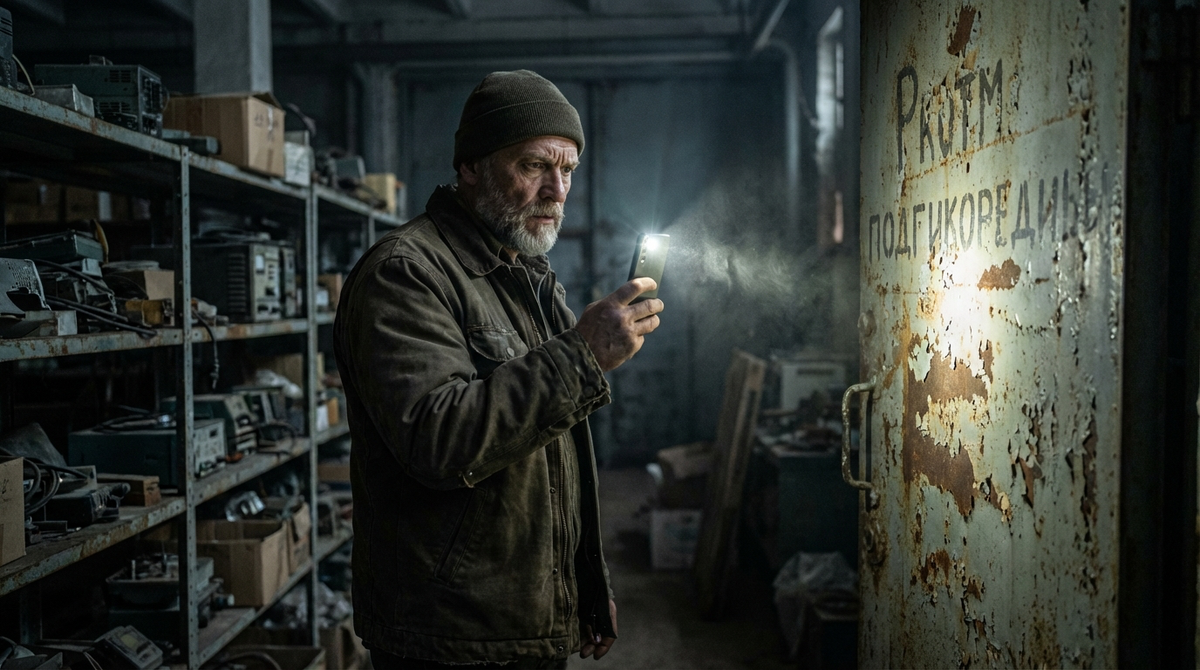 Темнота в корпусе Б была плотной, как войлок. Я шёл медленно, вытянув руку перед собой. Ладонь упиралась в стеллажи, покрытые пылью толщиной в палец. На пальцах оставался жирный серый след. Никто сюда не заходил – это было очевидно.