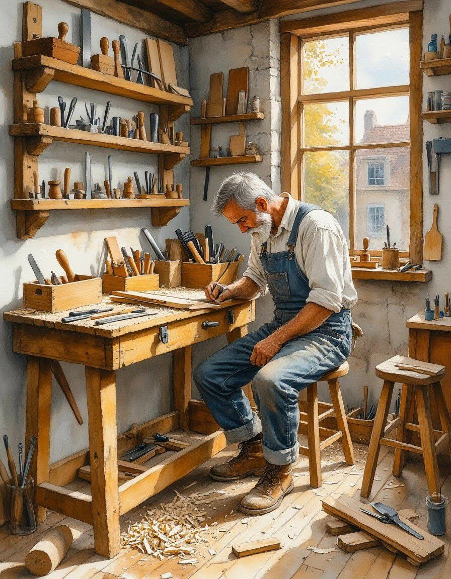 Он был плотником, но вдруг, почему то, разлюбил своё ремесло. Все вещи у него получались кривыми и несуразными, а в мастерской пахло тоской.