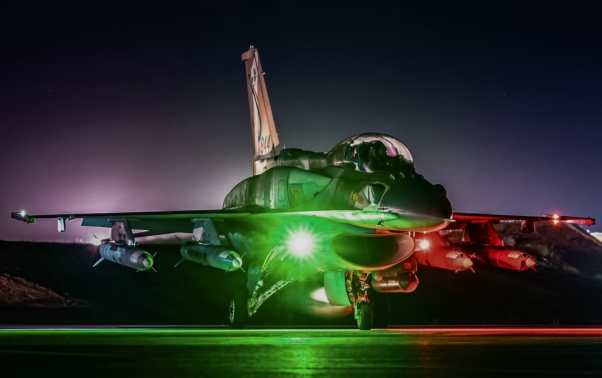 «Проморолик» операции «Восстающий лев» завершается дневной посадкой F-16C из 101-й эскадрильи. Нюанс: F-16C вернулся домой с двумя JDAM’ами. Нет оснований сомневаться в причастности к операции «Восстающий лев» самолетов F-15, F-16 и F-35, запечатленных на ночных кадрах, в то время как посадку F-16C с бомбами под крылом добавили, похоже, ради законченности видео: выруливание – взлет – посадка.