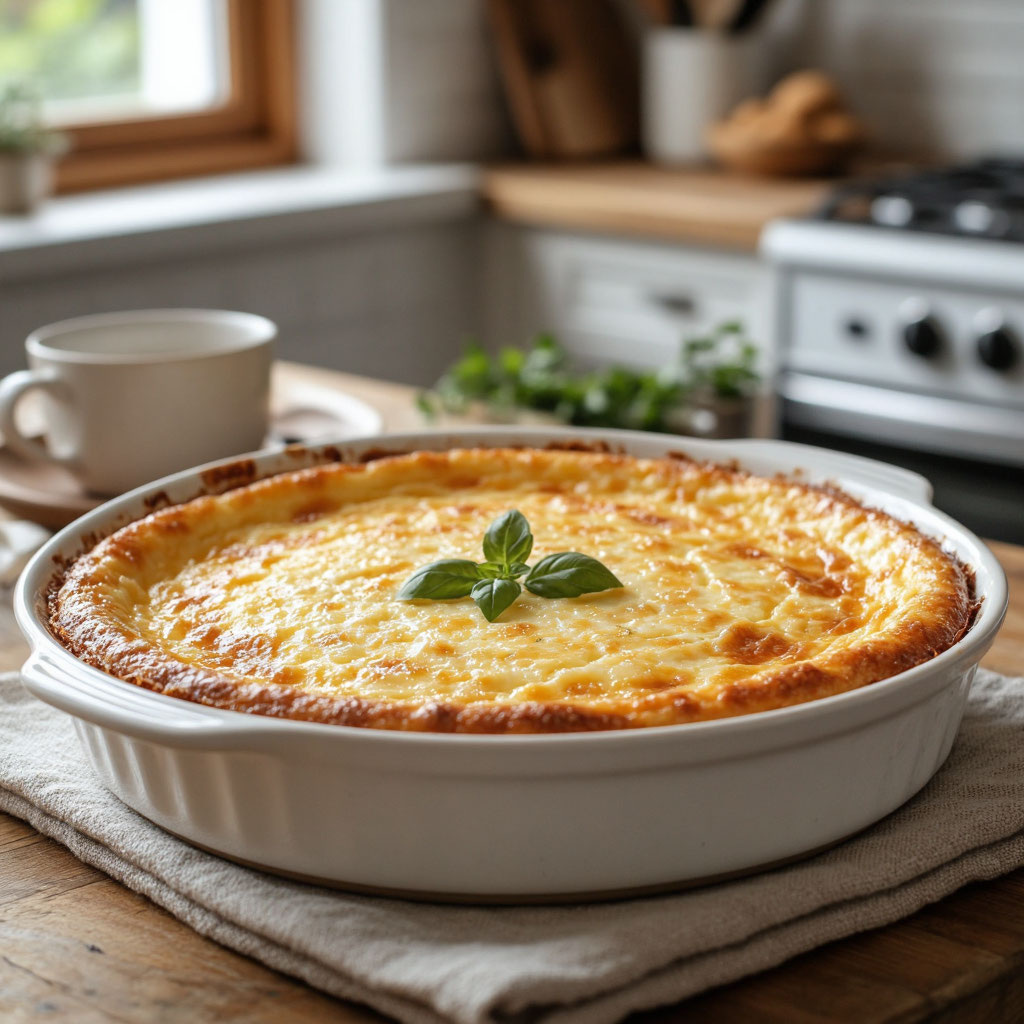 - Дайте остыть. Не вынимайте запеканку сразу — оставьте её в выключенной духовке с приоткрытой дверцей на 10–15 минут. Это предотвратит резкое оседание.