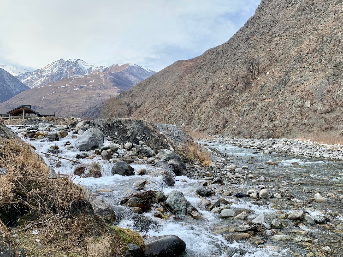 Нам показали и рассказали о гибели группы Сергея Бодрова. Если верить словам экскурсовода, то ледник, под которым погибли люди, спускался с гор со скоростью 200 км в час. К своему стыду, я все эти годы реально думала, что группа погибла под лавиной снега. Но нет! Все ущелье и близлежащие территории были залиты черной густой массой (смесью камней, земли и воды). И вот эта грязь с большой силой и на огромной скорости унесла тела погибших…. Их до сих пор не нашли, и люди числятся без вести пропавшими…