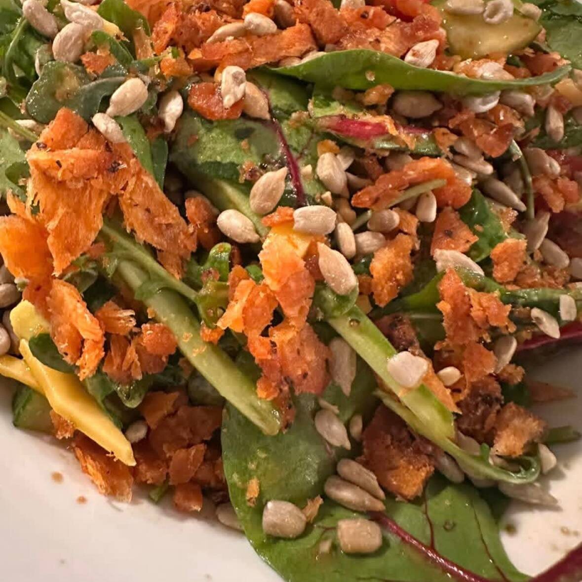 Слайсы лосося жарят на растительном масле или запекают в духовке (более жирный вариант), а также запекают в аэрогриле совсем без масла. Хрустящий и ароматный бекон кладут в бутерброды и салаты для феноменального хруста и дополнительного источника белка. 🔗themodernnonna 👉подписаться на @pridumali #foodтренды