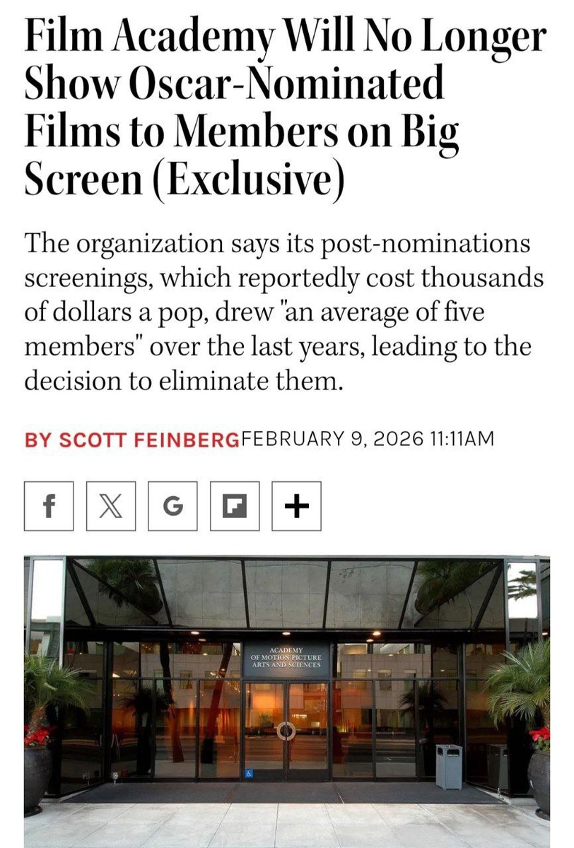 Теперь киноакадемики не смогут смотреть фильмы на большом экране, поскольку зрители туда больше не приходят. Гильдия объявила, что номинированные на «Оскар» фильмы предстоит смотреть на дому через официальный стриминг или в кинотеатрах. Причина этого до примитивности проста: за последние несколько лет на показы в Сан-Франциско, Нью-Йорке и Лондоне приходило всего 5 зрителей, хотя на организацию этих мероприятий тратятся десятки тысяч долларов. Постмейкер - автоматическое ведение канала 🤖 Анимация | СhatGPT-4 | Помощь с резюме