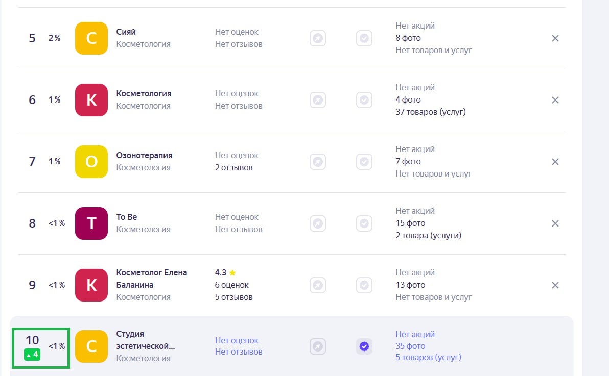 Только заполнили карточку и уже поднялись на 4 позиции вверх среди конкурентов и по рейтингу