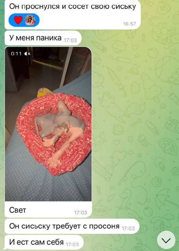 Он сосет свой бок вместо маминой сиси. Существуют кошачьи соски? Че делать-то?