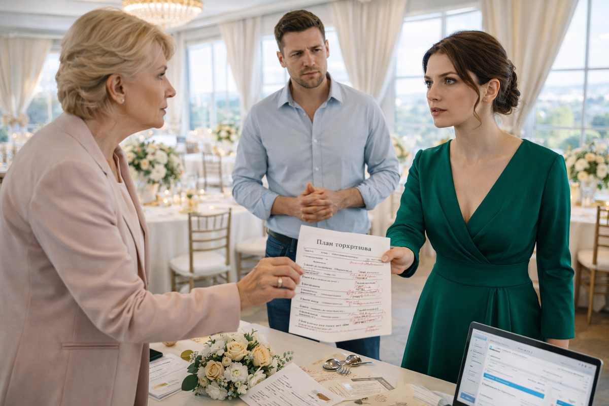 Имя Алины встречалось в документе ровно два раза. Первый — в разделе «Образ невесты». Второй — в пункте о рассадке гостей: «Невеста — справа от жениха». Всё. Больше никакого участия невесты в собственной свадьбе не предполагалось. Ни выбора ресторана, ни выбора музыки, ни даже выбора торта. Даже надпись на торте была уже утверждена: «Совет да любовь от мамы Людмилы».