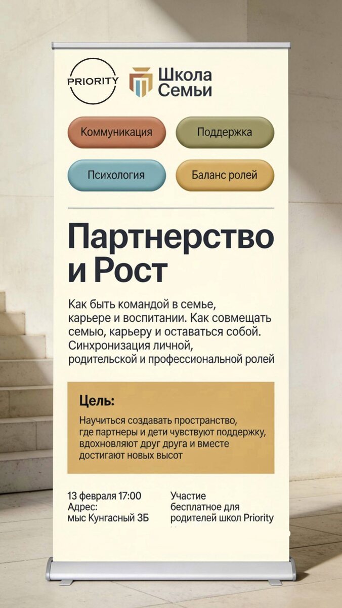 , мы приглашаем вас в Школу Семьи. Школа семьи – это пространство, где каждый из вас может задать любые вопросы и получить на них профессиональные ответы. Мы проведем серию встреч, приглашаем вас присоединиться 13 февраля. Тема: Партнерство и Рост. Как быть командой в семье. Синхронизация личной, родительской и профессиональных ролей. Цель: Научиться создавать пространство, где партнеры и дети чувствуют поддержку, вдохновляют друг друга и вместе достигают новых высот. ПЛАН МОДУЛЯ: ▪️Как наполнять ресурсами себя и семью, избегая выгорания. Искусство семейной гармонии: управляем энергией, временем и финансами. ▪️Как вдохновлять и поддерживать амбиции партнера (и свои). Учимся быть опорой для себя и близких. ▪️Точки роста отношений: как проходить кризисы и становиться ближе. Кризис как поворот к новой глубине. ▪️Эмоциональная грамотность для семьи: как говорить с детьми и друг с другом о чувствах. Создаем атмосферу доверия и безопасности. ❤️ Эта встреча для вас, если: Вы — роди
