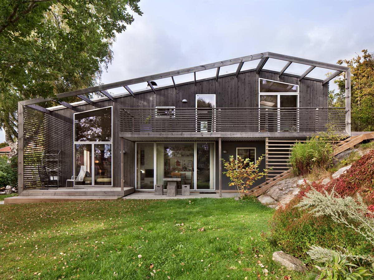 Шведская частная архитектура сочетает функциональность, экологичность и гармонию с природой: основной материал — дерево (клеёный брус, вагонка, паркет), фасады часто окрашивают в традиционный «фалунский красный». Дома отличаются лаконичными формами, панорамным остеклением и террасами, а внутри — каминами с изразцами, естественным освещением и сдержанной цветовой гаммой (белый, серый, бежевый с природными акцентами). Современные решения включают тепловые насосы, солнечные панели, сертифицированную древесину (FSC/PEFC) и модульные конструкции. В итоге получается комфортное, экологичное и эстетичное жильё, объединяющее традиции и инновации. 💥 Представляем нашу авторскую Коллекцию шведской частной архитектуры - сейчас в ней сейчас около 150 разных, красивых и необычных домов. Этот современный загородный дом для одной семьи построен на живописном участке рядом с лесом и скальным выступом. Концепция дома состоит в органическом движении по спирали внутренней организации пространства, как в п