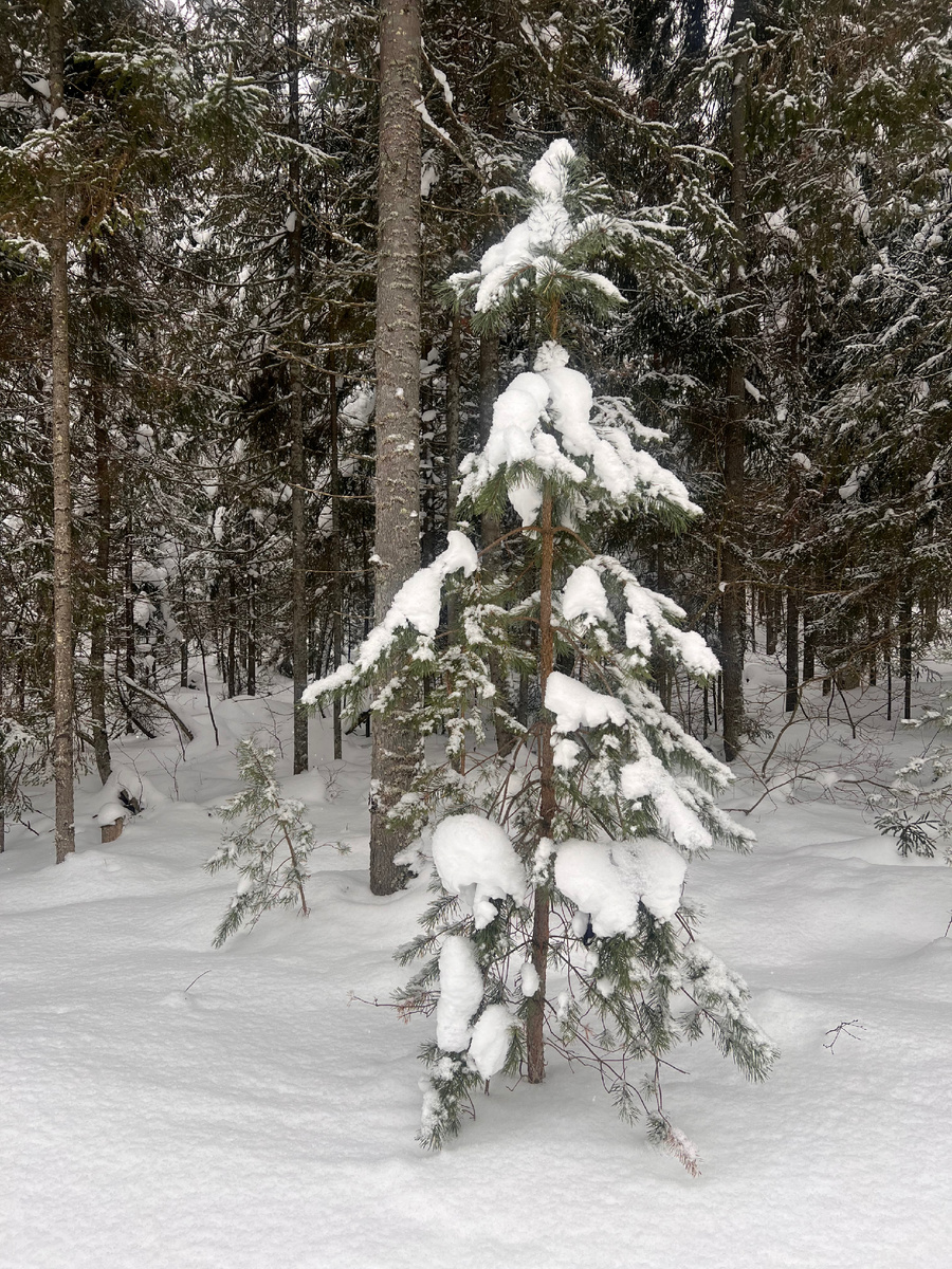 Хочу обратить ваше внимание на хвойные деревья. Как красиво на них лежит снег.