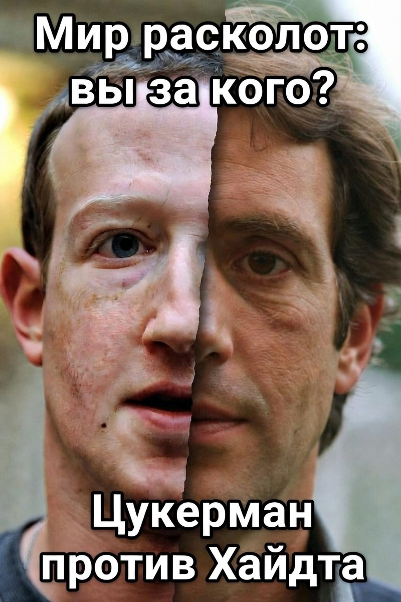💥 МИР РАСКОЛОТ: ВЫ ЗА КОГО? 💥 ДЕБАТЫ 1: ЗАПРЕЩАТЬ ИЛИ НЕТ ДЕТЯМ ДОСТУП К СОЦСЕТЯМ? НА ПОЗИЦИЯХ: 👤 Марк Цукерберг — Архитектор «Метавселенной», отец алгоритмов вовлечения. 👤 Джонатан Хайдт — Социальный психолог, идеолог «Великой перемотки» детства, требует запрета смартфонов до 16 лет. 🛡 ПЕРЕКРЕСТНЫЙ ОГОНЬ: ДОФАМИНОВАЯ ЛОВУШКА VS СОЦИАЛИЗАЦИЯ Цукерберг: «Слушайте, мир изменился. Соцсети — это современная игровая площадка. Запретить их ребенку — это как отобрать у него учебник истории и запереть в чулане. Мы даем детям голос, сообщество и навыки будущего!» Хайдт: «Марк, твоя "площадка" — это цифровое казино. Ты засунул портал в ад в карман каждому подростку. С 2010 года, когда фронтальные камеры и "лайки" стали нормой, уровень депрессий у девочек взлетел на 145%. Твои алгоритмы пожирают их внимание раньше, чем мозг успевает понять, кто они такие. Это не социализация, это массовая деформация психики». Градус иронии: Говорят, если у Цукерберга отобрать телефон, он начнет подходить к н