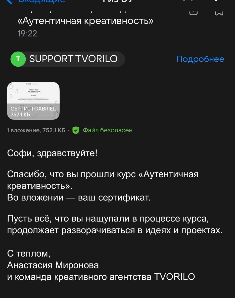 Проект сдала через месяц после окончания обучения и думала, что мне никакой бумажечки не дадут.