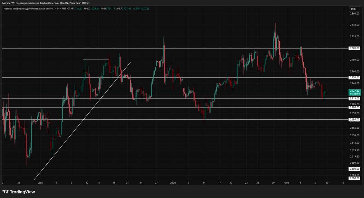 ❗️ По большому счету рынок весь день стоял в боковике и никуда не шел. Однако сегодня есть что обсудить. Это Лукойл. Ранее Лукойл чувствовал себя слабо и падал изо дня в день. Сейчас же ситуация меняется и сегодня он чувствовал себя сильнее всех. Это ему и свойственно. Так бывало очень часто. Сначала самый слабый, потом несколько дней очень сильно тащит рынок. Забегая вперед, скажу, что вижу потенциал роста Лукойла к 5800. (Не прям с текущих, а в целом). ✅ Следовательно то, что Лукойл активировался однозначно хорошо. Также добавляем факт перепроданного рынка и уже ДВА не закрытых гэпа сверху, вероятность роста увеличивается. Поэтому, как по мне в ближайшее время будет рост рынка в сторону 2750, там посмотрим по факту. Было бы вообще супер, чтобы сначала была коррекция к 2700 - 10, там можно будет присмотреть лонги с поставленной целью роста. Хорошего вечера! 🤝