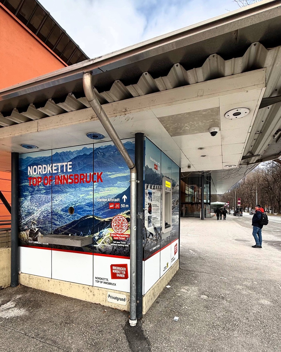 Оставили автомобиль на подземной стоянке в центре города и теперь находимся здесь. Фуникулёр Нордкеттенбан отправляется из центра Инсбрука.
