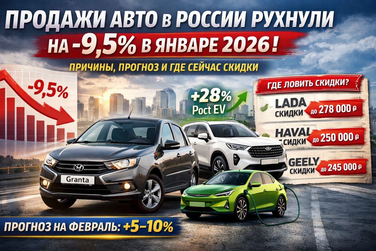 Продажи авто в России рухнули на 9,5–11% в январе 2026: причины + прогноз на февраль и где ловить скидки