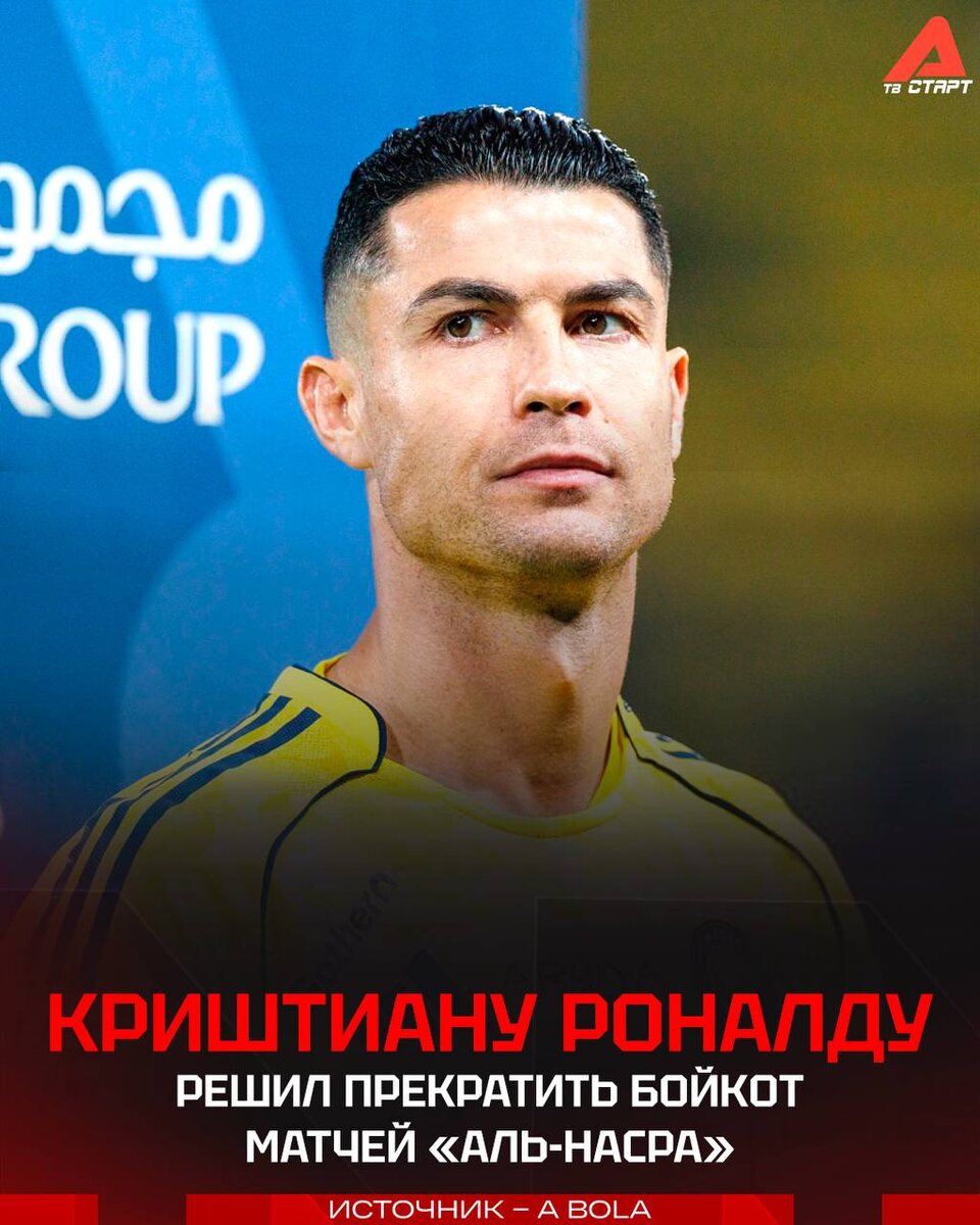 »! В Португалии пишут, что Криштиану урегулировал конфликт с руководством клуба и вновь готов выступать за команду. Ждем его на поле уже в субботу 🙌🏻 Подписывайся на ТВ СТАРТ в MAX📲