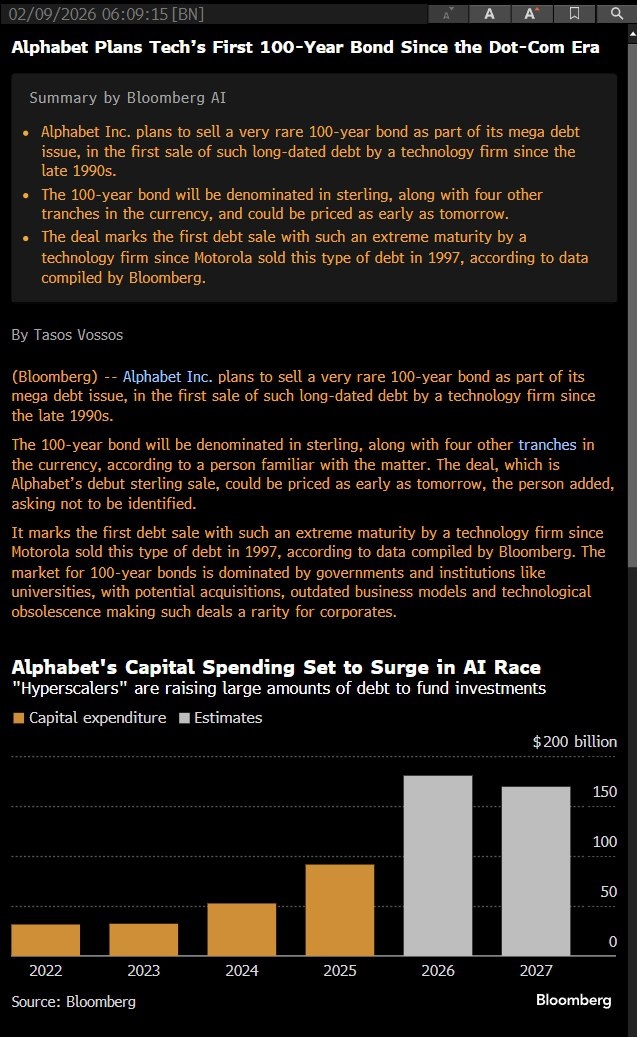 Гугл, конечно, не моторола, но вера в себя впечатляет Alphabet планирует выпустить 100-летние облигации. В последний раз это происходило с Motorola в 1997 году, когда Motorola считалась последним крупным предприятием В начале 1997 года Motorola входила в число 25 крупнейших корпораций Америки по рыночной капитализации и доходам. Больше такого не повторится. В 1997 году бренд Motorola занимал 1-е место в США, опережая Microsoft В 1998 году Nokia обогнала Motorola на рынке мобильных телефонов, а после выхода iPhone перестала привлекать внимание потребителей Сегодня Motorola занимает 232-е место по рыночной капитализации с объемом продаж всего в 11 миллиардов долларов https://x.com/i/status/2020892054809620620 @marketheart