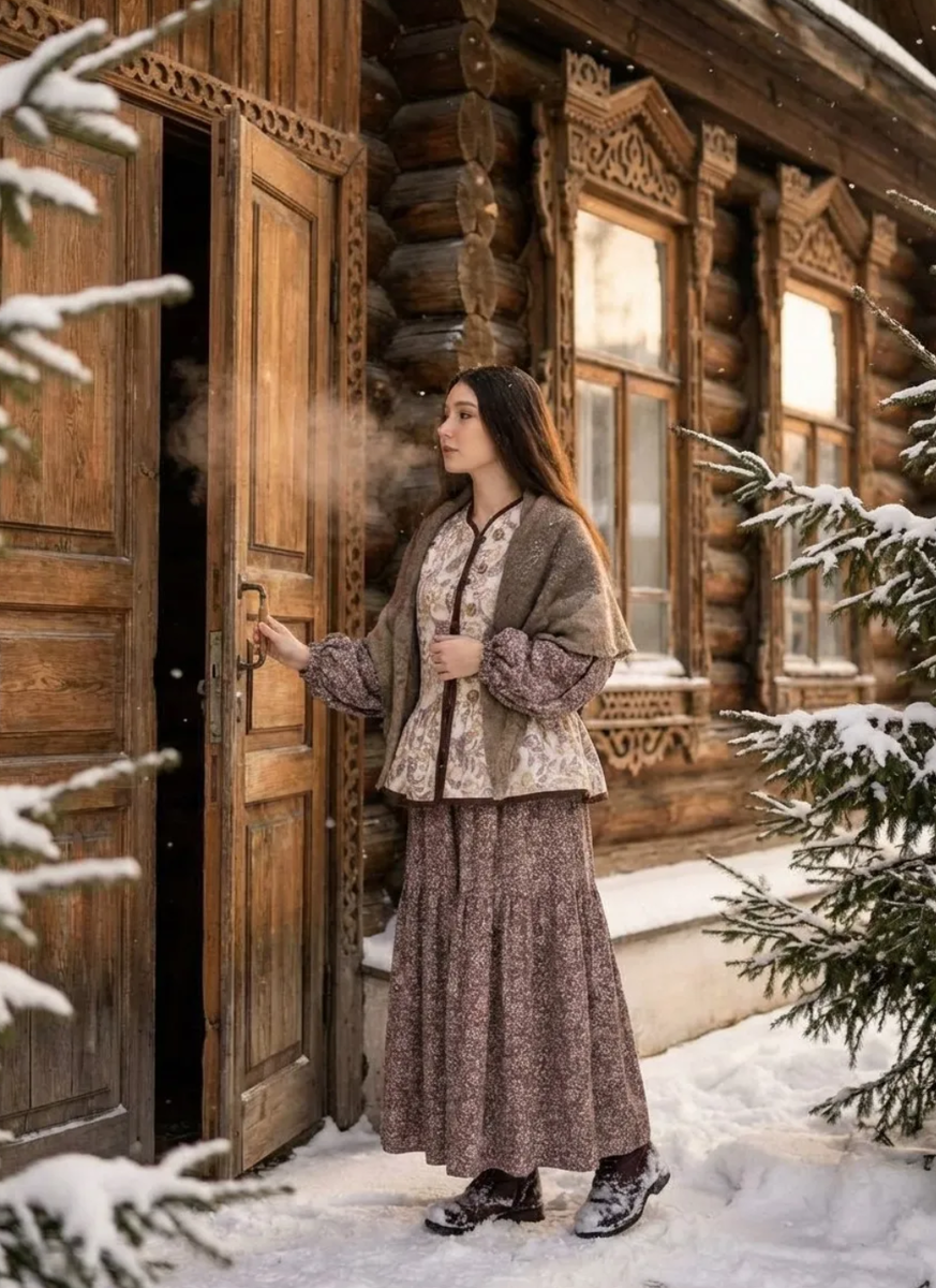 Душегрея! Какое душевное название у этого слова, уж простите за тафтологию. Именно этот предмет одежды и решили мы сшить для Оли. В храме часто бывает прохладно, так что душегрея здесь совсем не лишняя. Тем более, одежда в традиционном стиле мне близка по духу, так же как и натуральные ткани. Вот такой прообраз мы нашли на просторах интернета. Правда здорово?