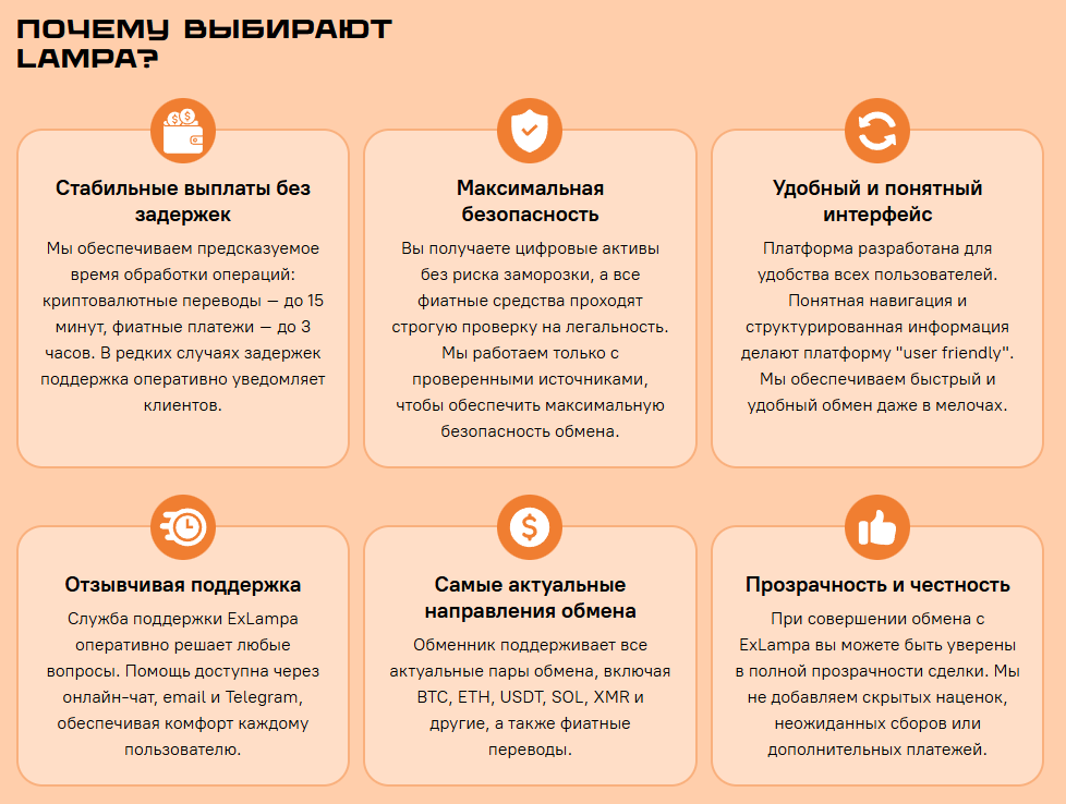 Можно ли доверять ExLampa для первой покупки? Да. Это один из самых спокойных и предсказуемых способов сделать свой первый шаг. Здесь нет давления, скрытых комиссий и технического хаоса. Есть чёткий маршрут: ввёл сумму → получил реквизиты → оплатил → дождался крипты.